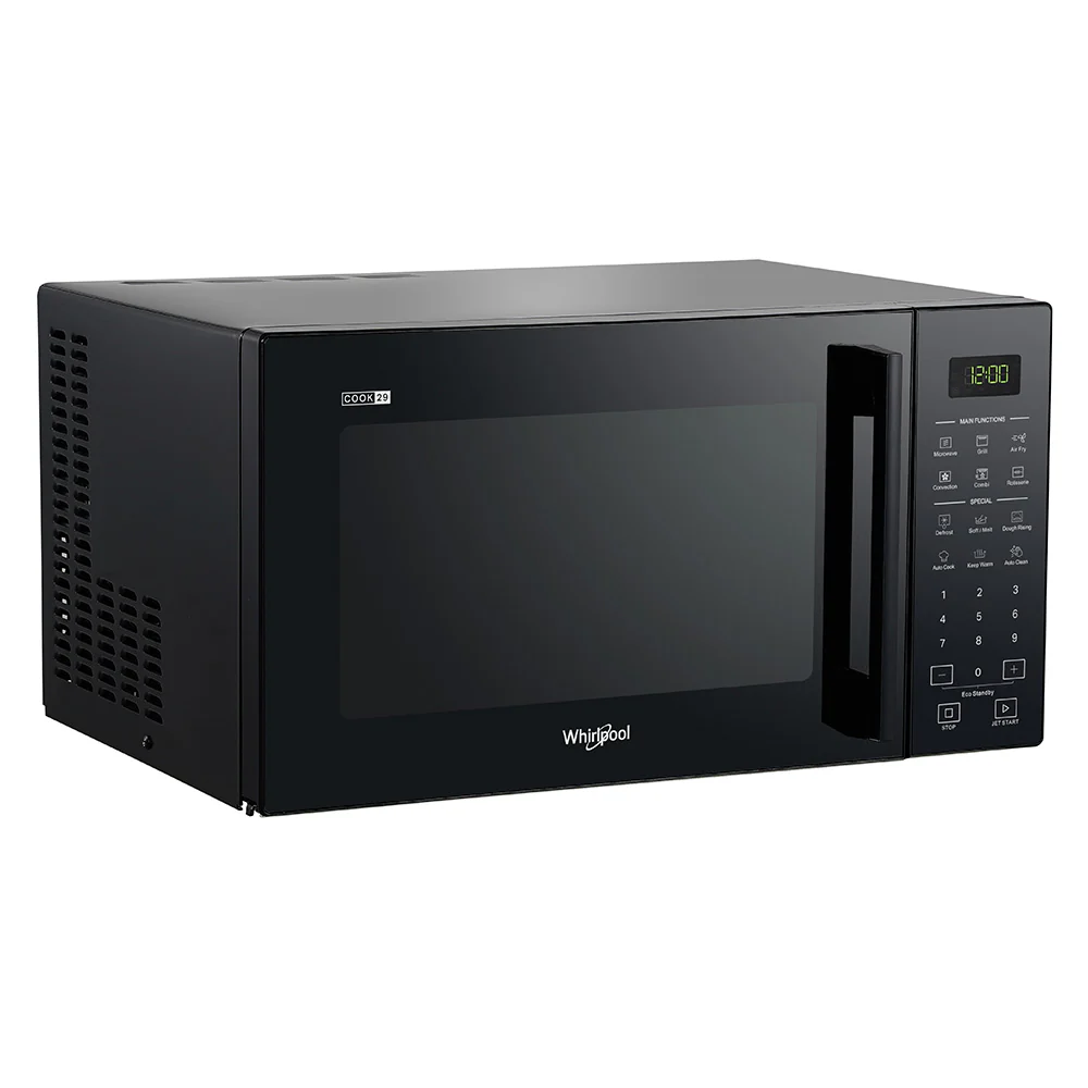 Upgrade your kitchen with the Whirlpool MWP298BAUS 29L Microwave with AirFry - designed for healthier, smarter cooking. This sleek freestanding microwave features a built-in air fryer for crispy meals with little to no oil, a detachable rotisserie for perfectly roasted meats, and Forced Air technology for even heat circulation and oven-like results. With over 300 pre-programmed Chef Menu recipes, you’ll enjoy a wide range of effortless meal options, from reheating and baking to grilling and air frying.