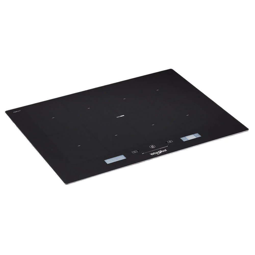 This top-of-the-range Whirlpool Induction cooktop features SmartSense, a new sensor-based cooking technology with up to 63 cooking combinations all available with step-by-step assistance. It also offers AssistedDisplay functionality which offers a new text-assisted touch display and FlexiFull which is a completely flexible surface with up to 8 different power levels at the same time.